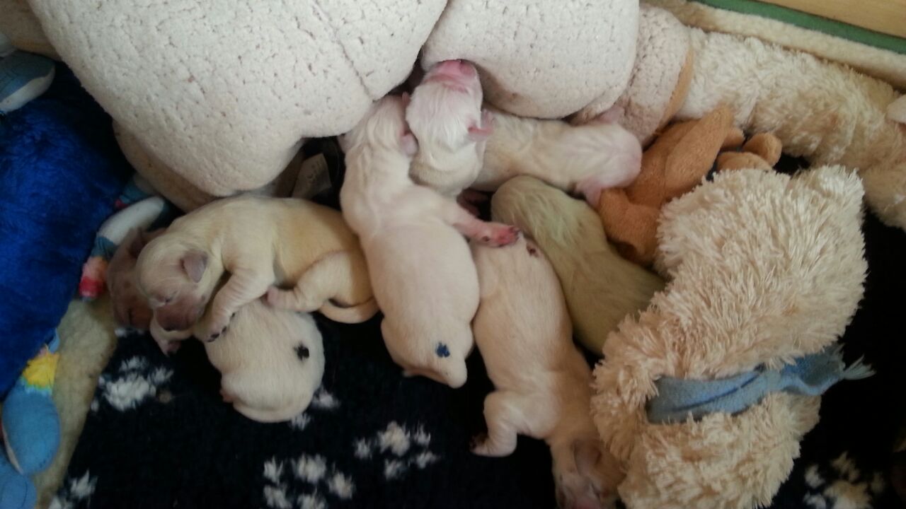 Endlich 10 wunderschöni Welpe hend d Welt entdeckt. Mer sind überglücklich.